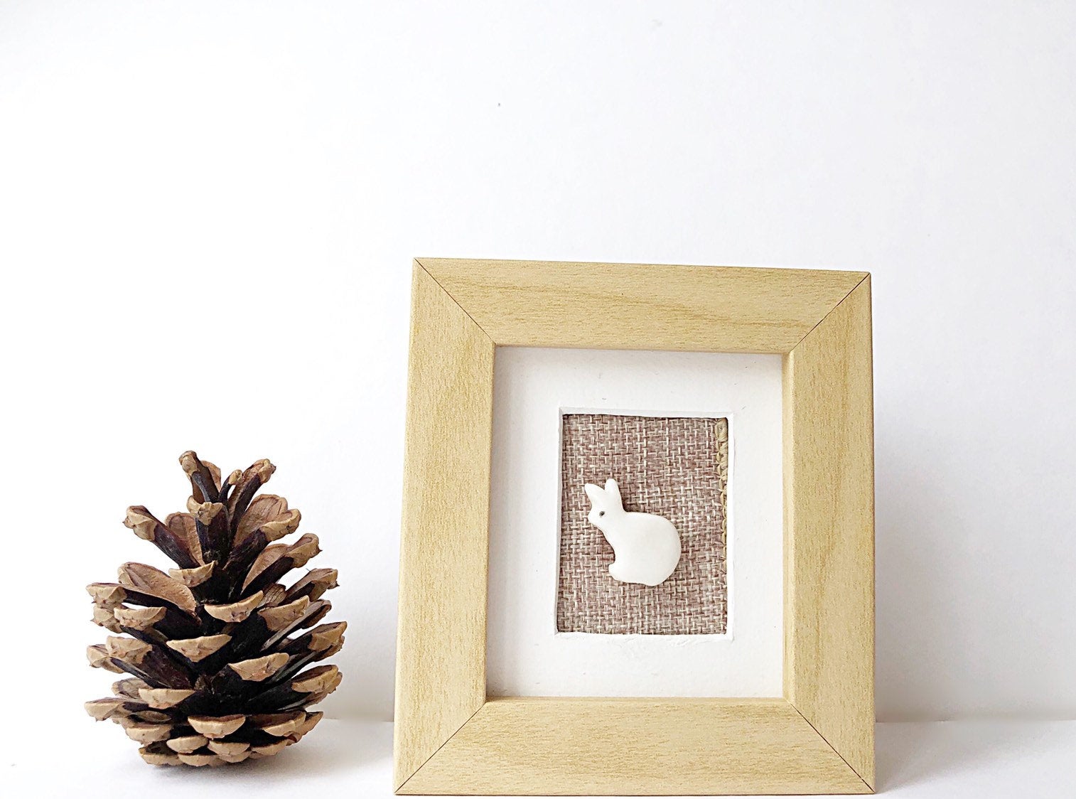 The bunny is hand-cast with stoneware clay, then tidied and bisque fired. A second firing is carried out after the glazing.
